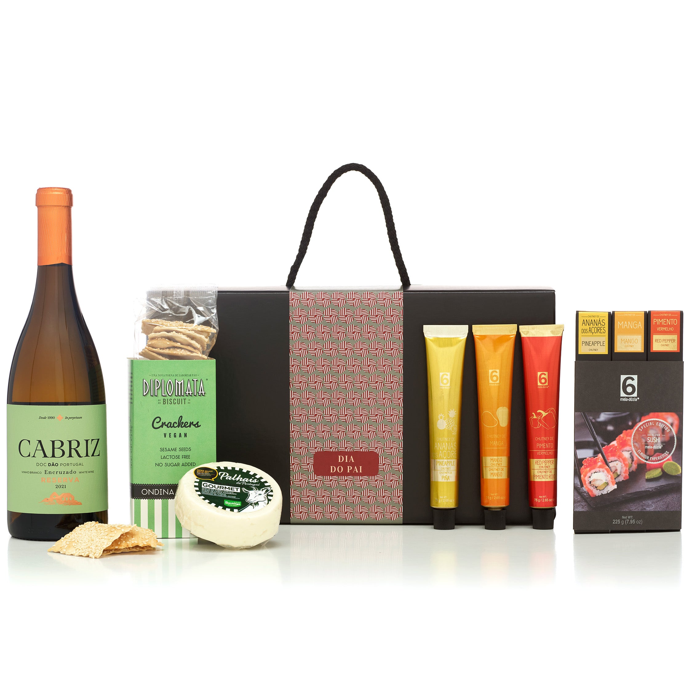 Há pais que preferem uma experiência clássica, mas bem afinada: vinho, queijo e sabores que entram como acompanhamento perfeito. Este cabaz é para esse pai — o que gosta de receber, de pôr a mesa e de perceber que cada elemento foi escolhido para harmonizar.