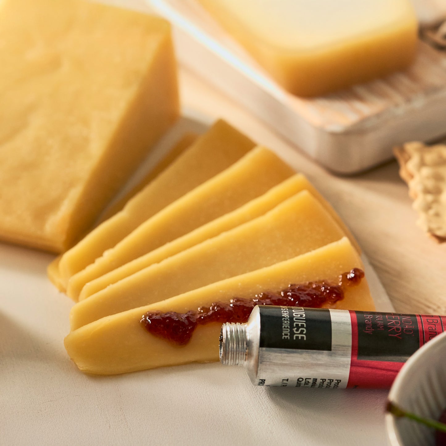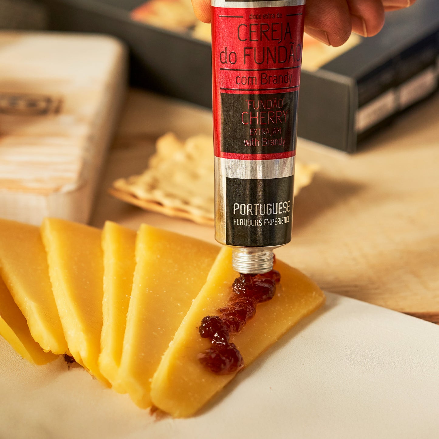 Quando integra o doce de Cereja do Fundão, acrescenta dimensão vínica e um calor aromático que contrasta e, ao mesmo tempo, harmoniza com a suculência da fruta. O perfil final é profundo e requintado, perfeito para momentos de degustação e tábuas de festa.