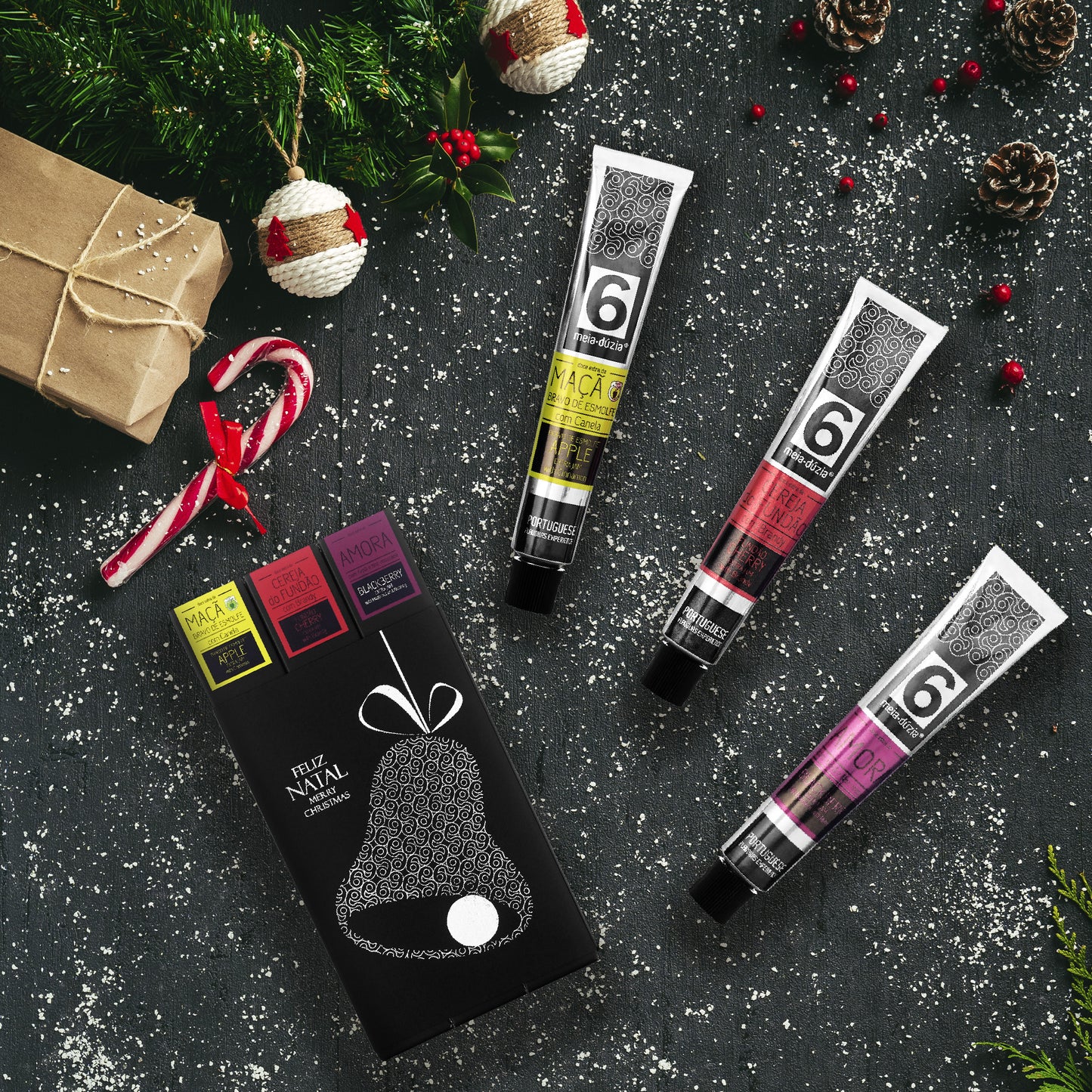 Três combinações distintas dão corpo a este pack natalício: receitas que unem frutas portuguesas de origem protegida a especiarias aromáticas, resultando em doces equilibrados e cheios de carácter. São sabores que despertam emoções e transportam para as cozinhas tradicionais, onde cada frasco ou bisnaga guarda um pedaço da história de Portugal.