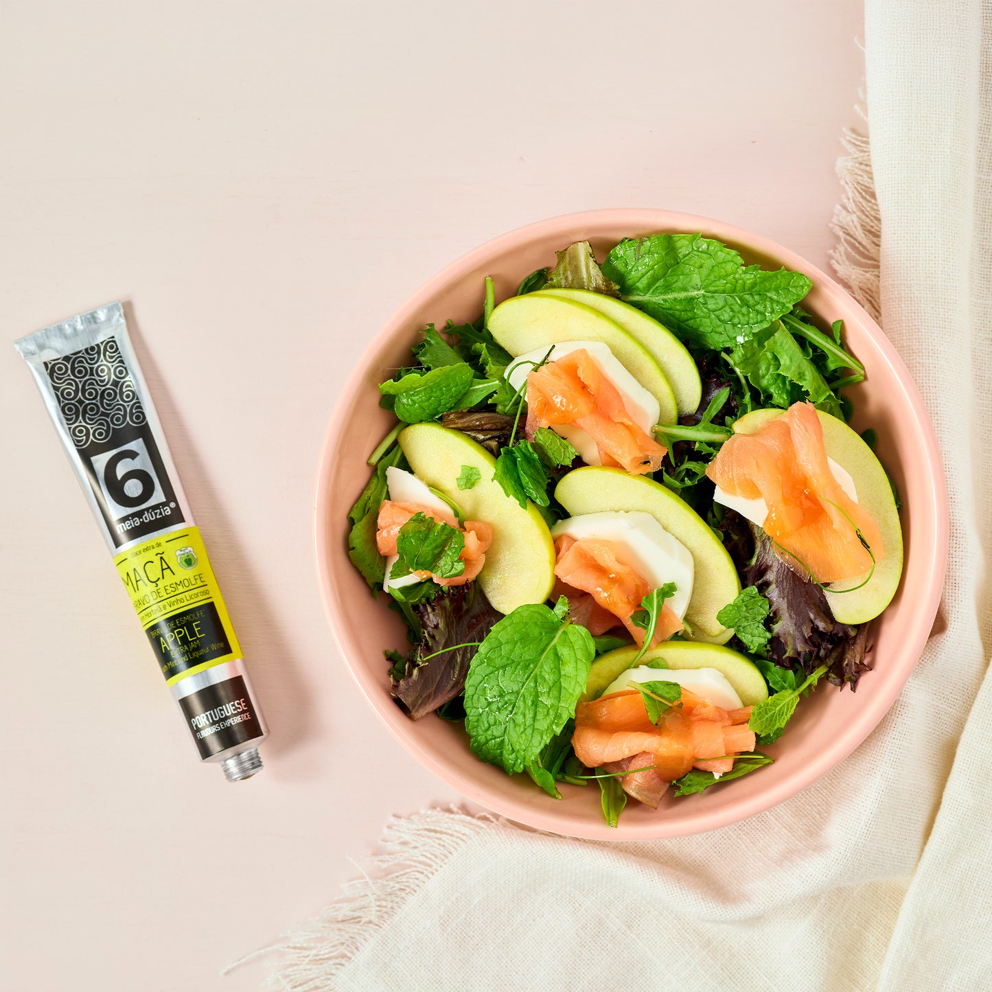 - Salada salmão fumado com doce extra de maçã bravo de Esmolfe com hortelã e vinho do porto meia.dúzia®