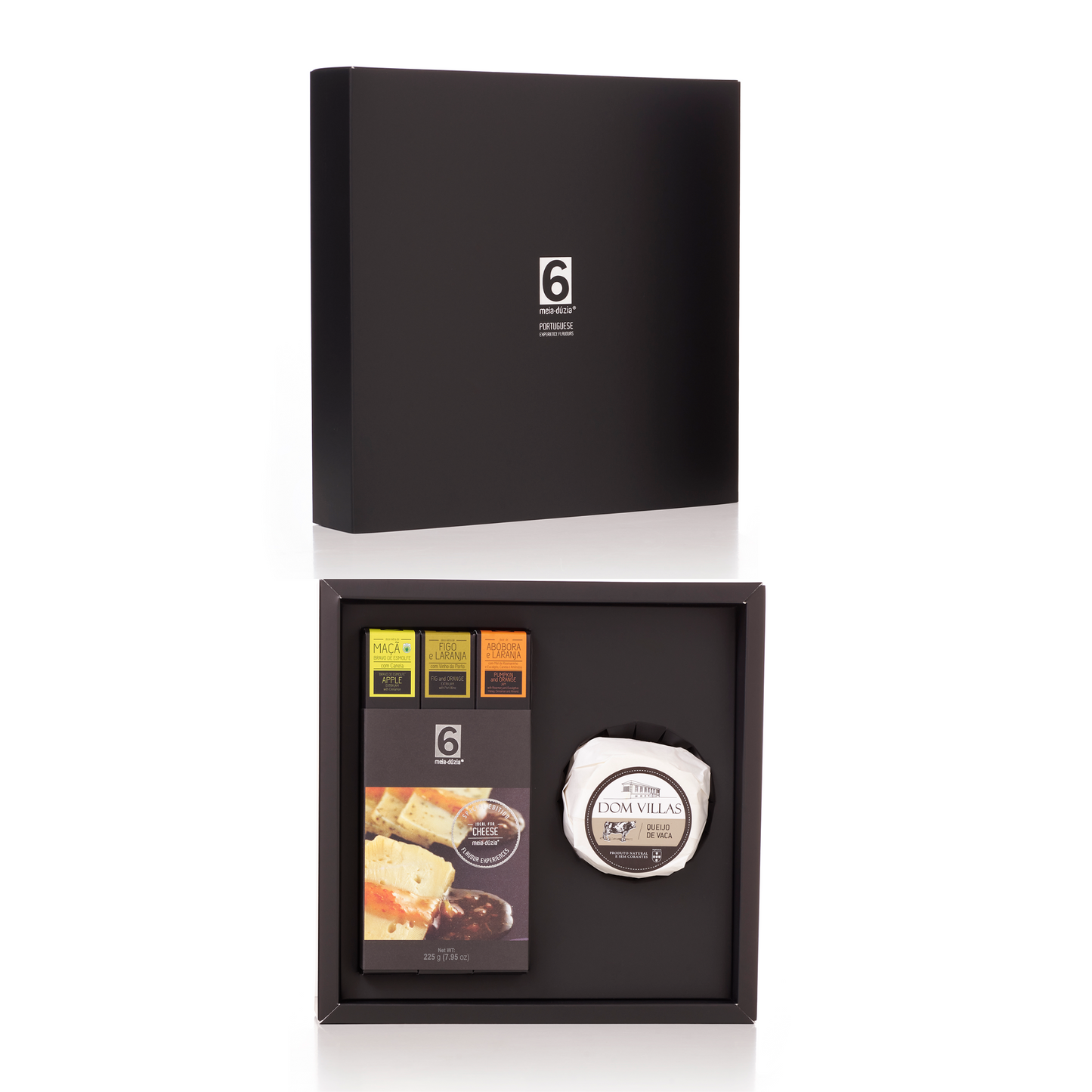 To create your board for Portuguese Cheeses, use 2 to 3 varieties of cheese, rye or corn bread, cottage cheese and harmonize with our selection of 3 genuinely Portuguese sweets that are part of the PACK 3 Jams Ideal for Cheeses.