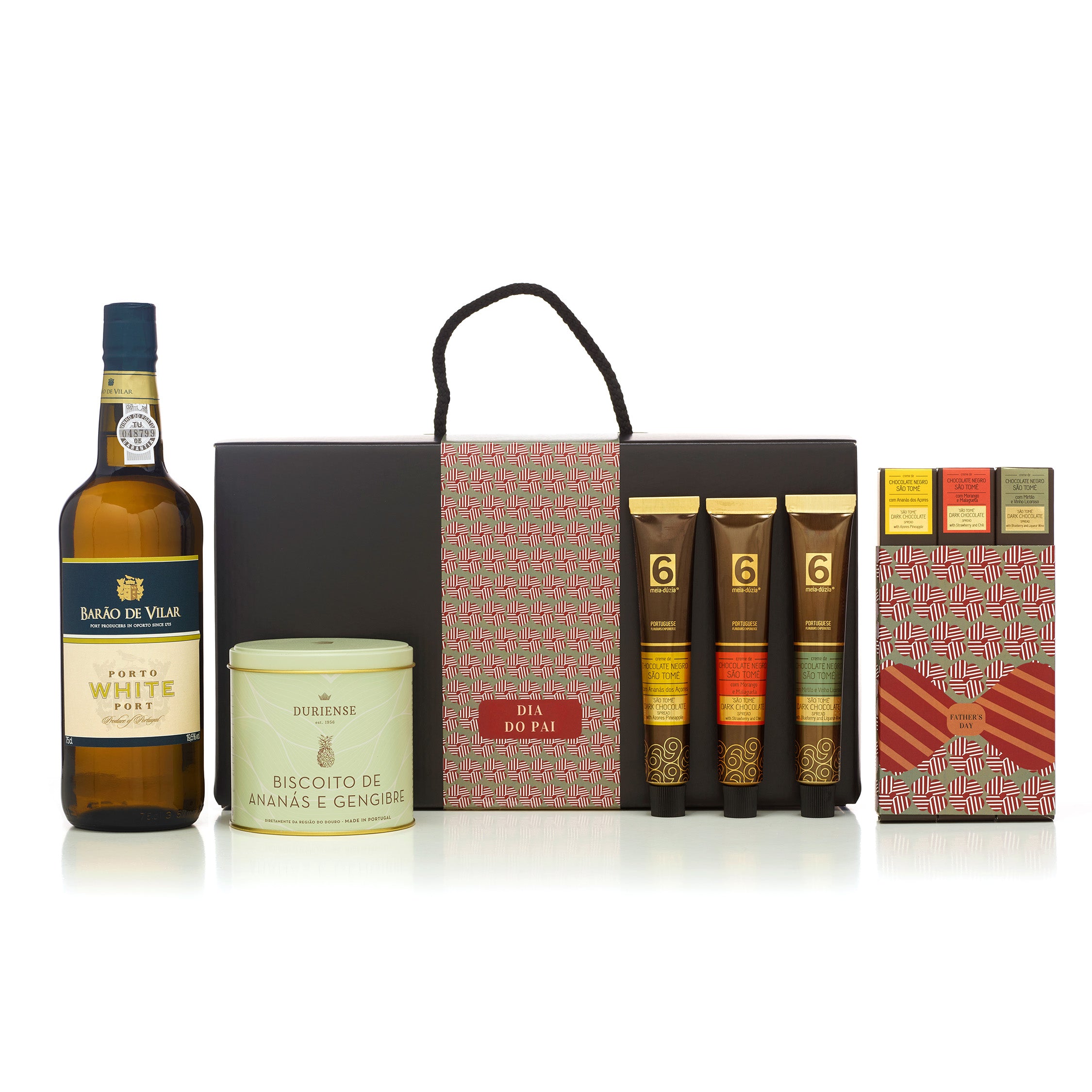 Este cabaz tem uma vantagem clara para quem procura uma prenda original para o pai: oferece “sequência” e não apenas “doce”. O Porto Branco, servido fresco, cria contraste e eleva a prova; o biscoito acrescenta textura e pausa; e os três chocolates permitem comparar perfis frutados e vínicos, como se fosse uma prova guiada.