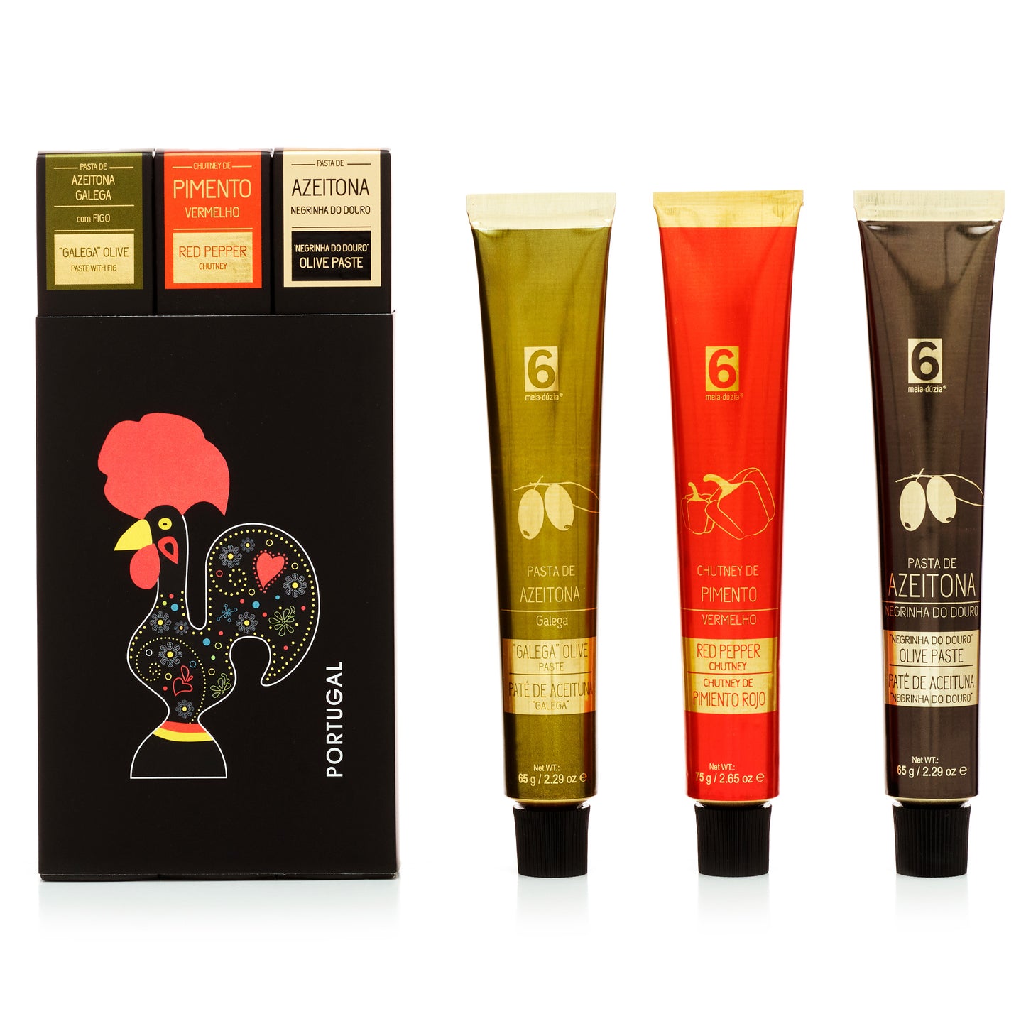 O PACK 3 Sabores – Galo de Barcelos é um tributo à cozinha portuguesa, onde as azeitonas assumem papel de destaque. Base da dieta mediterrânica e protagonistas na produção de azeite, as azeitonas marcam a nossa cultura alimentar desde tempos remotos, estando presentes tanto em pratos simples do quotidiano como em celebrações festivas. A par delas, ingredientes como o pimento vermelho das hortas atlânticas completam esta seleção, criando uma coleção que reflete a ligação entre território, tradição e identidade gastronómica.