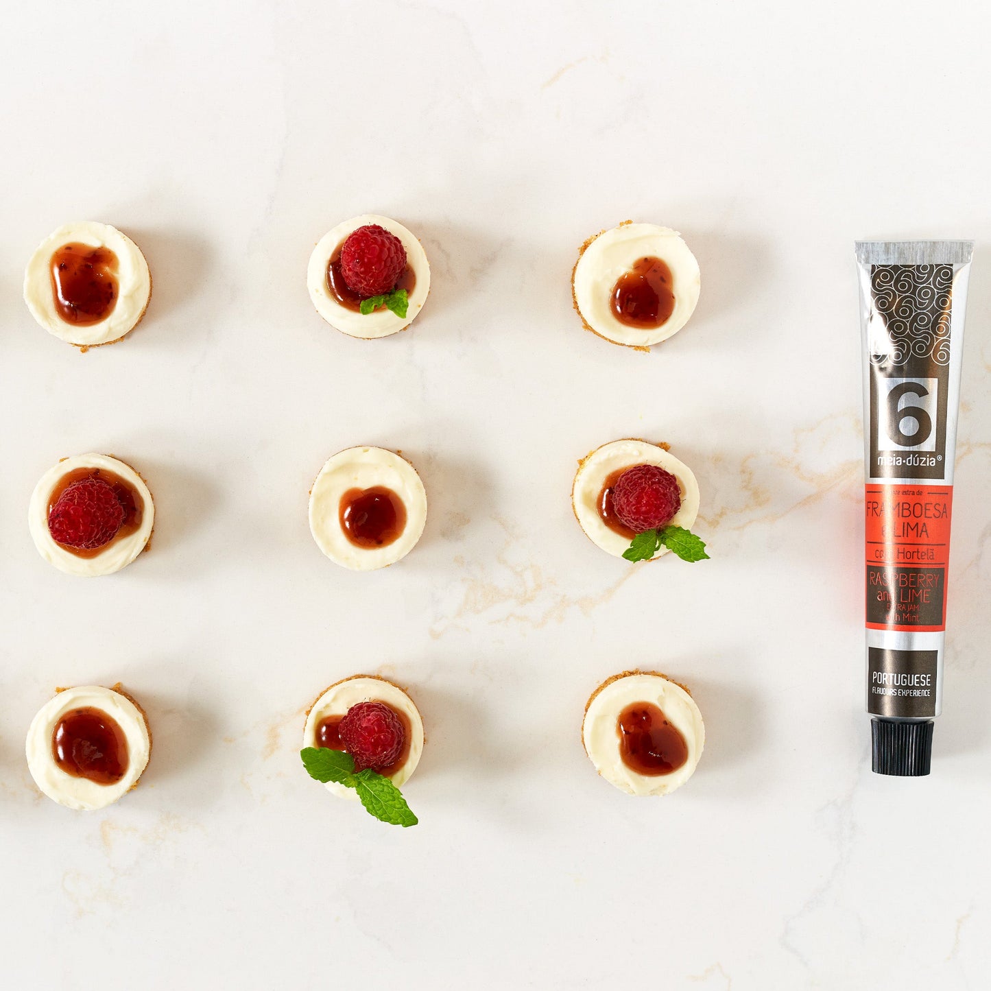 - Doce Extra de Framboesa e Lima com Hortelã: Utilize como recheio de cupcakes, macarons ou simplesmente sobre fruta fresca.